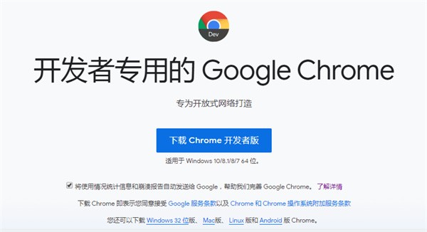 这个版本的浏览器是专门针对网站开发人员的,它的目的是帮助开发者在Chrome的下一个稳定版发布更新前,就能对自己运营的网站做好相应的适配调整。