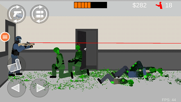 3、进入游戏后点击屏幕射击,射击僵尸身体的不同位置伤害和所得金钱是不一样的,射击头部伤害和金钱是最高的。