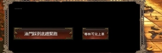 ○选择林可儿后,两人想上车逃跑,但是林可儿因为保护主人公受伤了,此时有两个选项,一个是“油门踩到底”,一个是“等林可儿上车”。