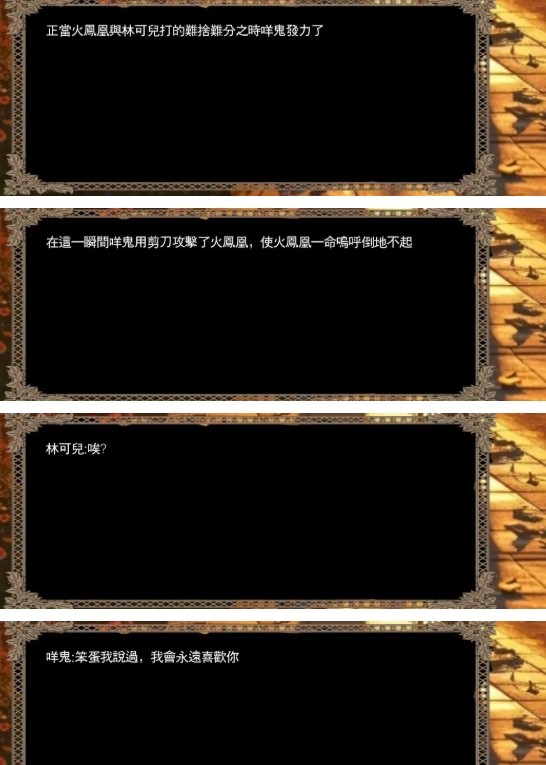 隐藏结局:只接受火凤凰的表白,期间拒绝其他所有人告白,最后会被刀,达成“永恒之爱”结局。