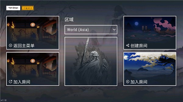 6、在主界面点击对战可以联机和其他玩家对战,点击区域可以更改服务器,点击加入房间可以和其他玩家进行对战。