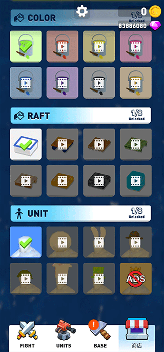 3、点击base,建造更大的木筏容纳更多的人;