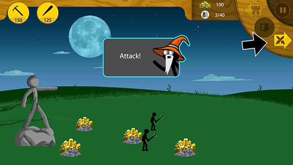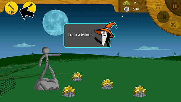 1. 矿工:在游戏中,你可以通过轻触或按住开采图标来控制矿工。当矿工接近金矿时,他们的图标上会显示出一个装满黄金的袋子,表示他们已经收集到了黄金。此时,你需要让矿工走到雕像后面,倒出黄金,完成收集。这样,你就获得了更多的资源,可以用来训练士兵、升级建筑等。