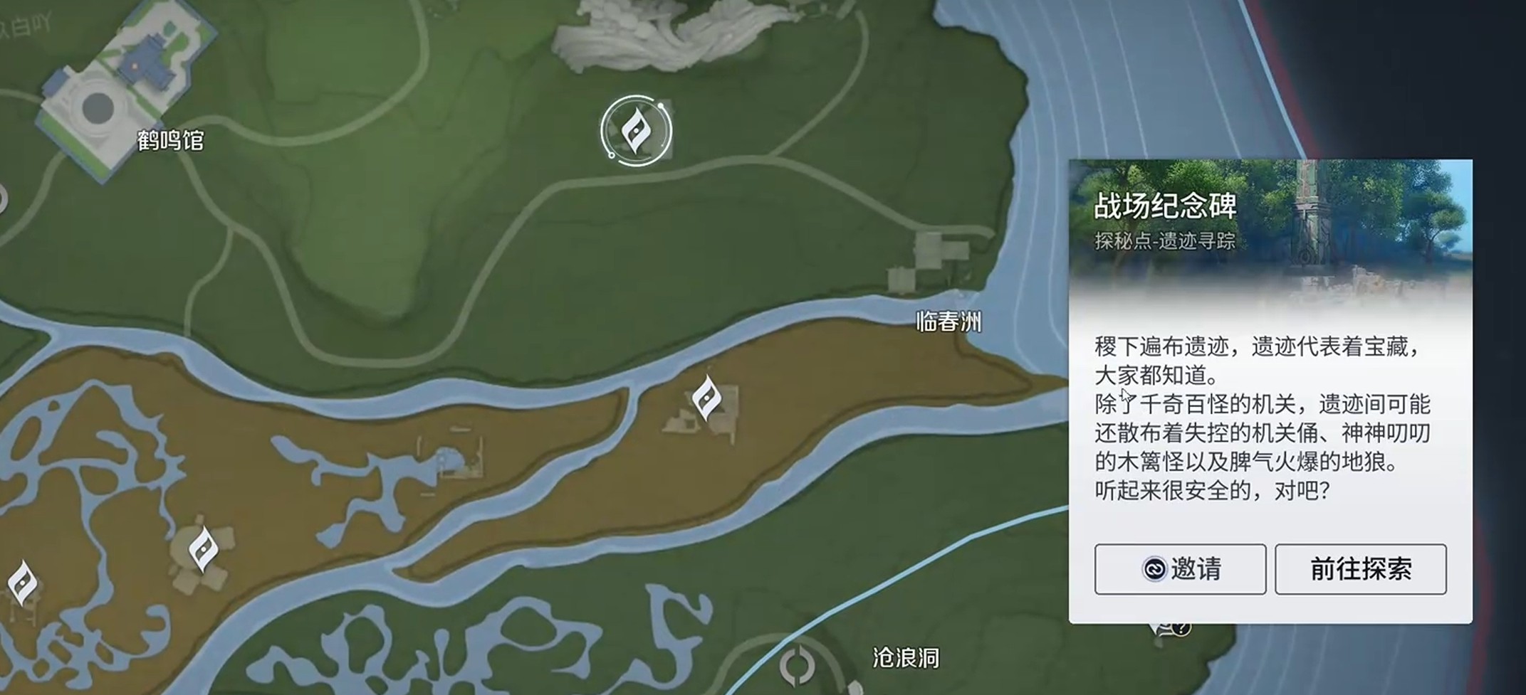 传送过去之后往西南走,找到"战场纪念碑"这个点。